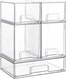 [Stackable Design] Come with 5 storage drawers, included 12.1″ W and 4.4”H&7.6‘’H storage containers. The storage containers are stackable, vertical storage will save a lot of space. Put your small objects in acrylic drawers to make your countertop space more tidy.