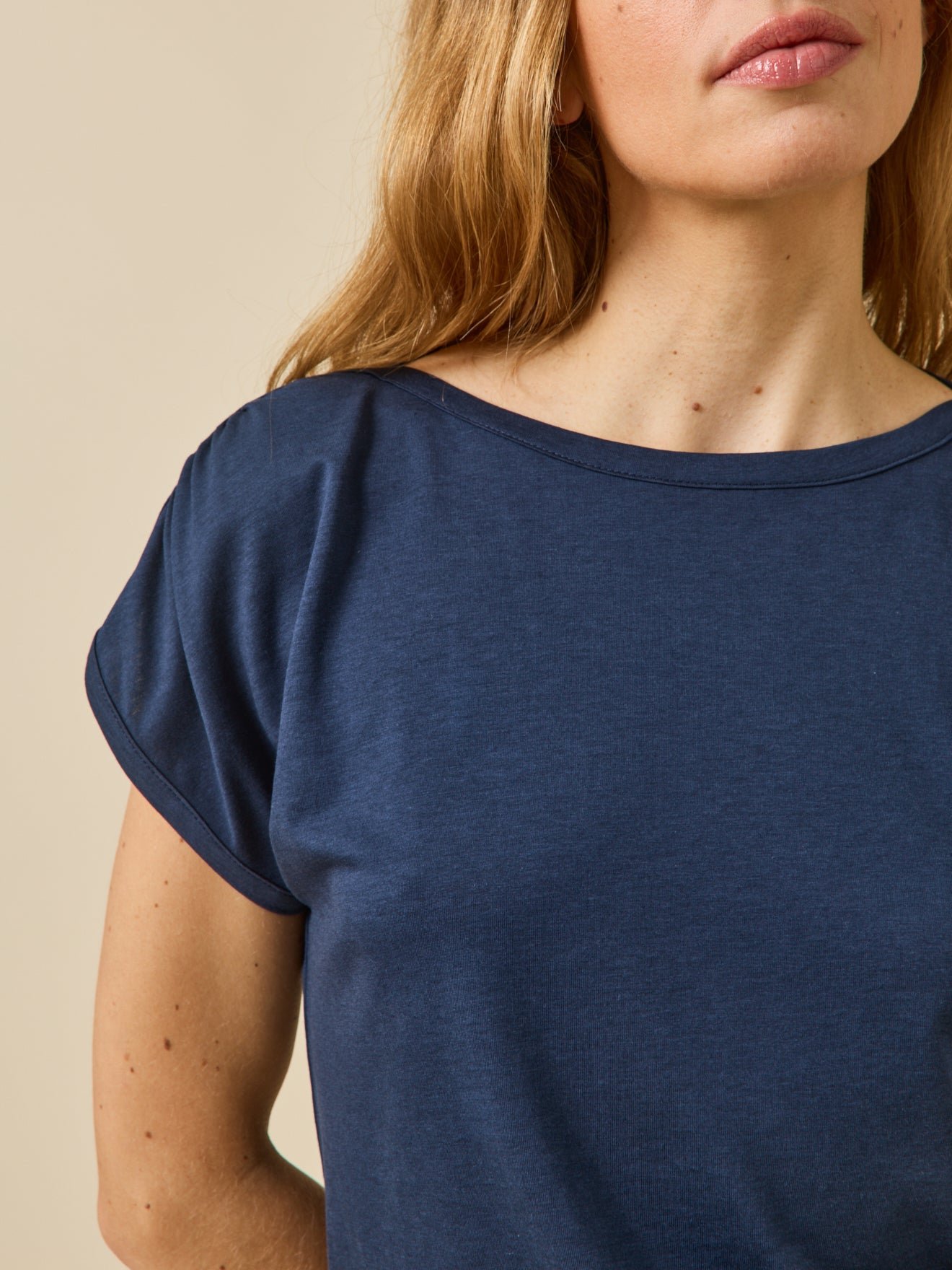 • Boat neckline, straight hem. Length at back, 58cm approx. in size S.